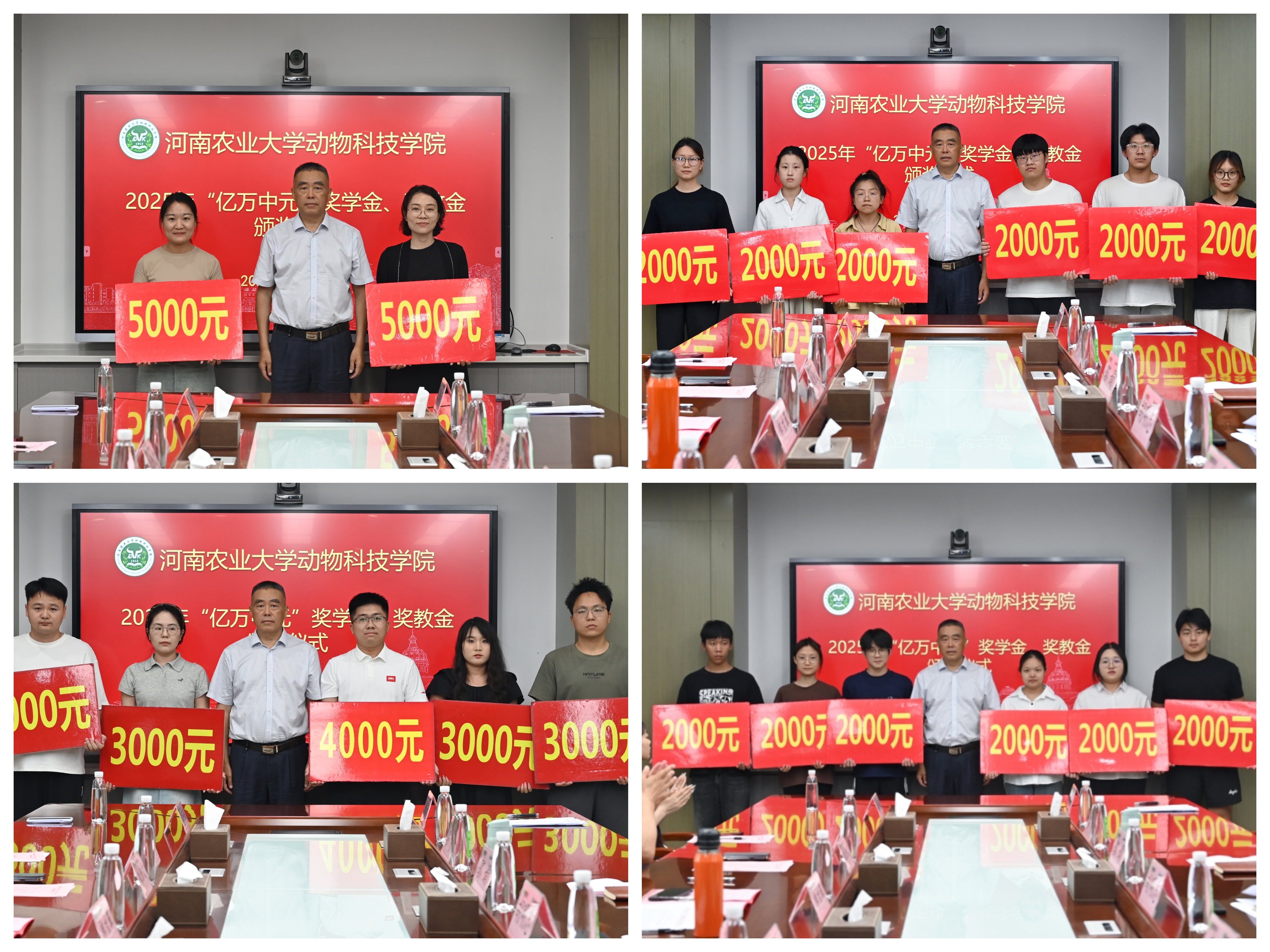 于龙子湖校区行政楼319会议室举行2025年“亿万中元”企业奖学金、奖教金颁奖仪式,河南亿万中元生物技术有限公司董事长郑文革、总裁朱宏凯、总经理郑秀娟、市场部经理苏云凤、办公室主任赵静凯、总经理助理郑鸿润、总经理助理李子菱、小黄书app