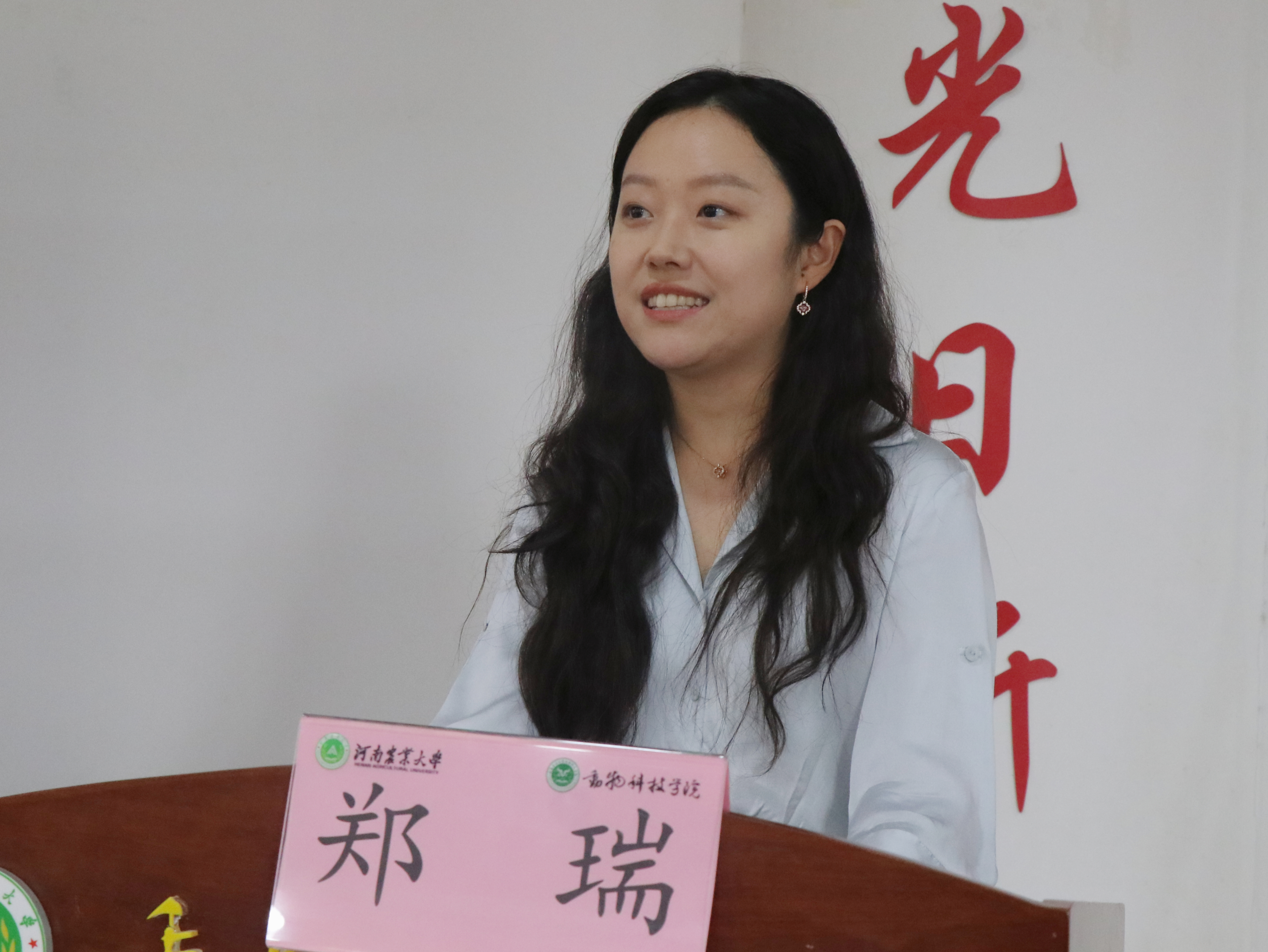 动物营养与饲料科学系教师郑瑞作为获奖教师代表发言,向正大康地集团和学院领导老师致以最衷心的感谢,表示这份奖励与荣誉将激励自己以更加饱满的热情和责任心投入到教学科研工作中,以更加严谨的态度,履行好教书育人的使命。