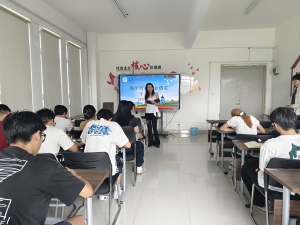 本网讯(通讯员 林智雅)为强化学生安全教育管理,守牢假期安全防线,近日,学院于龙子湖校区桃李园三楼会议室召开2025年端午假期学生安全稳定专题会议,院组织员兼团委书记韩笑、辅导员赵姝灿和各班学生干部参会。