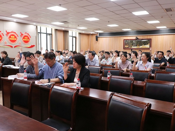 在分组讨论环节,全体教职工分为四个小组,围绕《院长工作报告》《工会工作报告》《财务工作报告》进行深入讨论。大家踊跃发言,积极为学院发展提出建设性意见。大家一致认为提交会议的三个报告全面客观、成绩突出、目标清晰,将有力推动学院事业稳中求进。与会人员举手表决,一致同意通过三个报告。