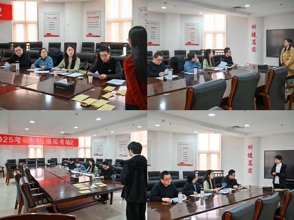 于龙子湖校区第一实验楼北330和南501会议室举行考研复试模拟面试。本次面试指导组由经验丰富的硕士生导师、专业任课教师、班主任等共八名教师组成。