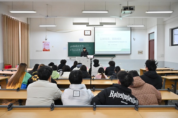 于龙子湖校区繁塔楼E113教室举办“以新提质 赋能成长”学生会述职大会,辅导员赵姝灿、杨超然及全体学生会成员参会,会议由黄子浩主持。