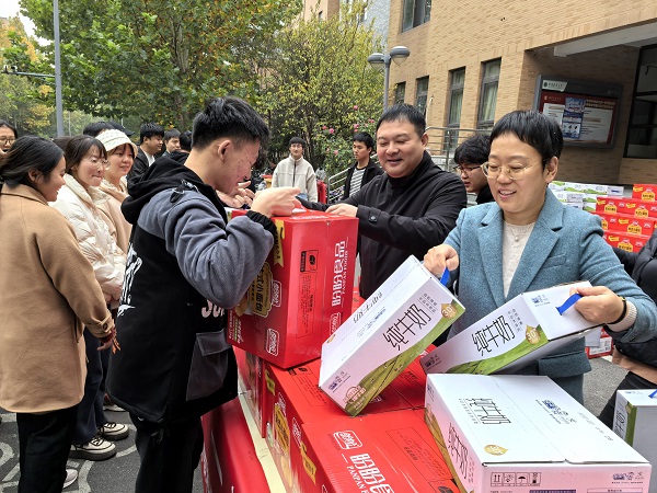 在龙子湖校区,学院领导班子为考研学子发放“加油礼包”,一提提面包和牛奶送至学生手中,现场洋溢着欢乐和温馨。院党委书记余磊与考研学生亲切交谈,勉励大家凝心聚力、持之以恒,同时劳逸结合、沉着应考,学院将全力相助为考研学生保驾护航,祝愿大家都能取得理想成绩、不负青春。