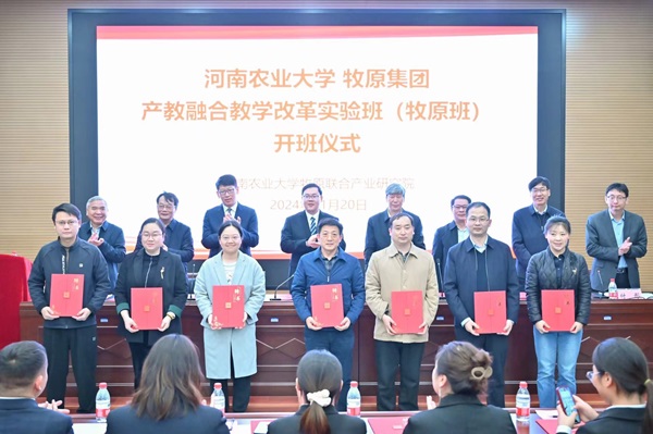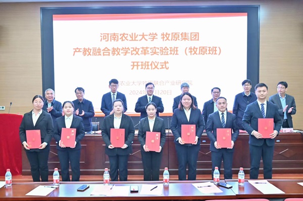具有深厚历史底蕴和鲜明办学特色,学院始终坚守立德树人的根本任务,致力于培养知农爱农服务三农的复合应用型人才。牧原集团是行业领军者,双方共建牧原班是产教融合、人才培养的重要举措。牧原班将发挥双方资源优势深入合作研究,通过双导师制、实习实训等培养学生创新思维与实践能力,设立专项基金鼓励学生参与科研攻关,推动成果转化,还将组织社会实践增强学生社会责任感,助力学校创建中国特色世界一流农业大学与高等教育发展。