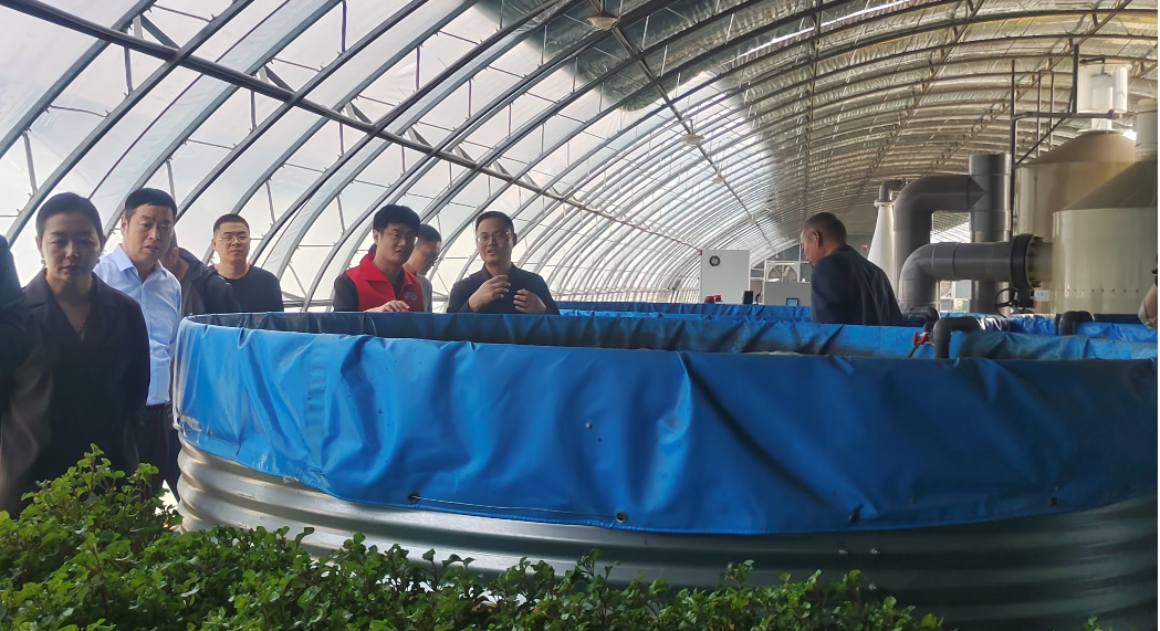 后续在水产养殖方面给予该合作社更多的技术支持。大家实地考察了对虾循环水工厂化养殖管理情况,并与项目负责人曹少洋等就对虾零排水养殖模式、养殖种类、放养密度、日常管理等进行指导交流。专家们为其详细讲解了高密度养殖情况下养殖鱼类投喂管理、疾病防控等注意事项,鼓励该合作社进一步做好虾菜共养空间规划,深入挖掘虾菜共养产品特色、赋能循环渔业特色,做好生态产业化样板,打造金品项目。