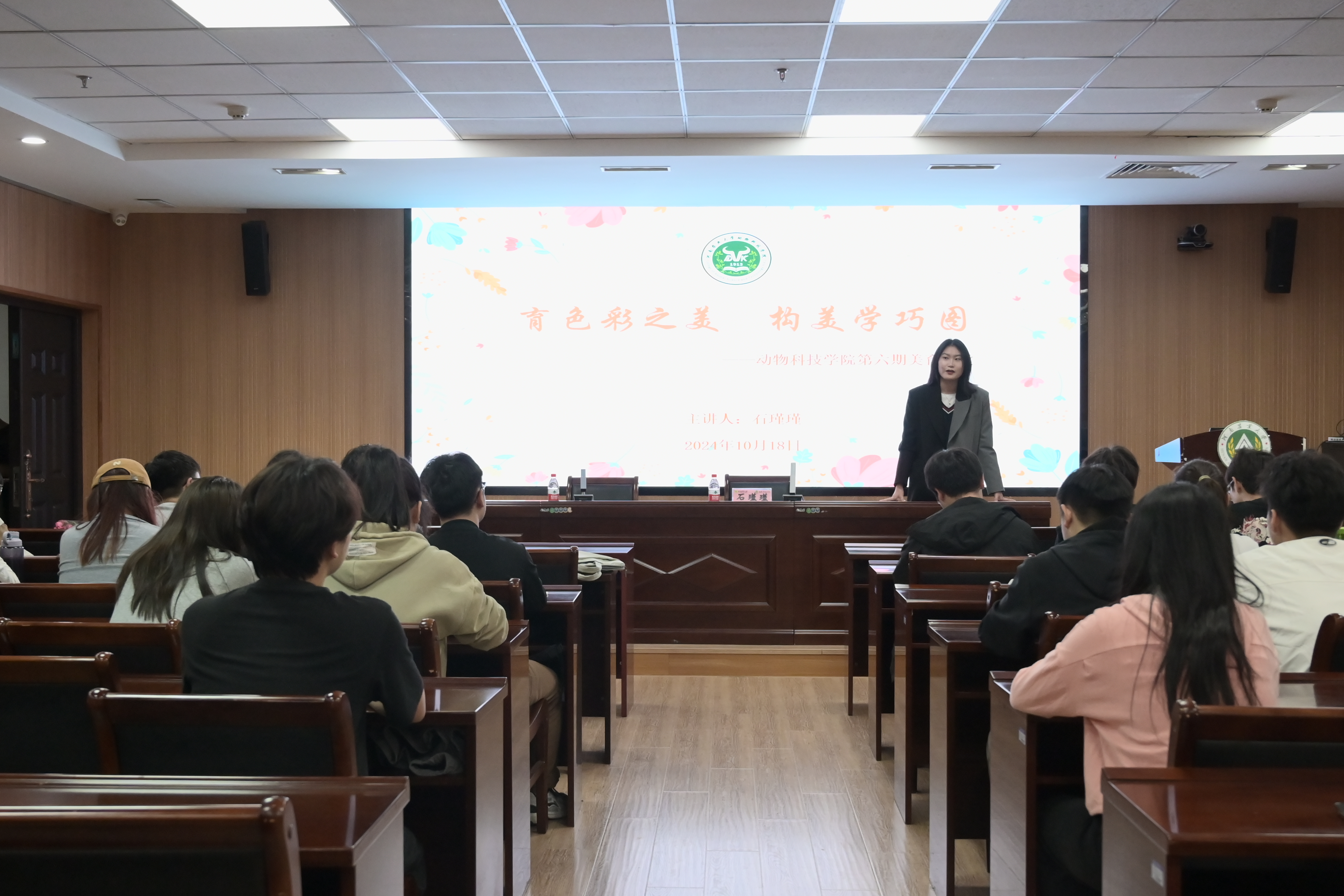 于龙子湖校区第一实验楼南321会议室举办“育色彩之美 构美学巧图”第六期美育课堂。特邀微晓工作室指导教师石瑾瑾作为主讲嘉宾,辅导员赵姝灿、22级和23级本科生代表参与本次活动。会议由赵姝灿主持。