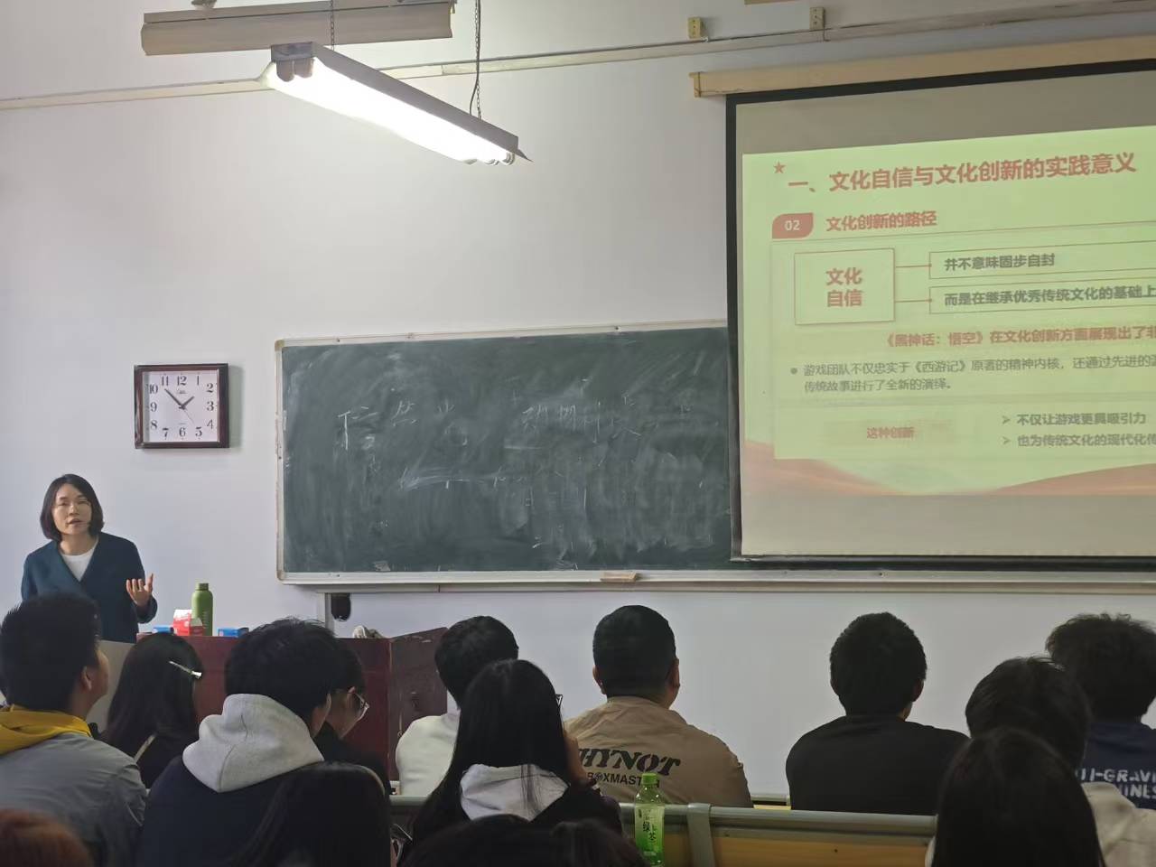 讲座中,韩笑结合学生关注热点,以《从《黑神话:悟空》的爆火中领悟三中全会精神》为题,从文化自信与文化创新的实践意义、科技创新与文化产业的融合发展、民族品牌与国际化战略的实践启示、二十届三中全会精神在文化产业中的具体实践等四方面展开讲述。