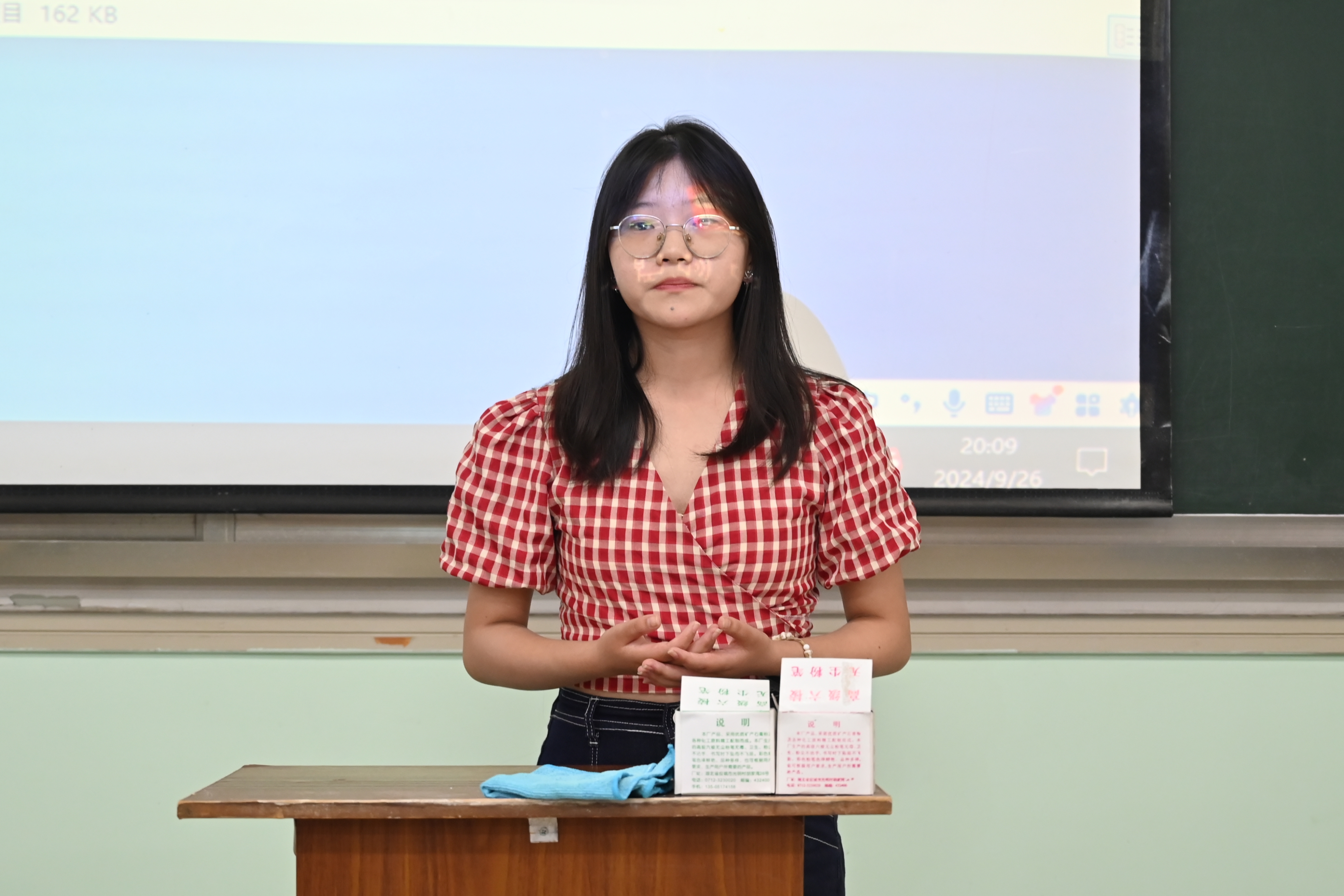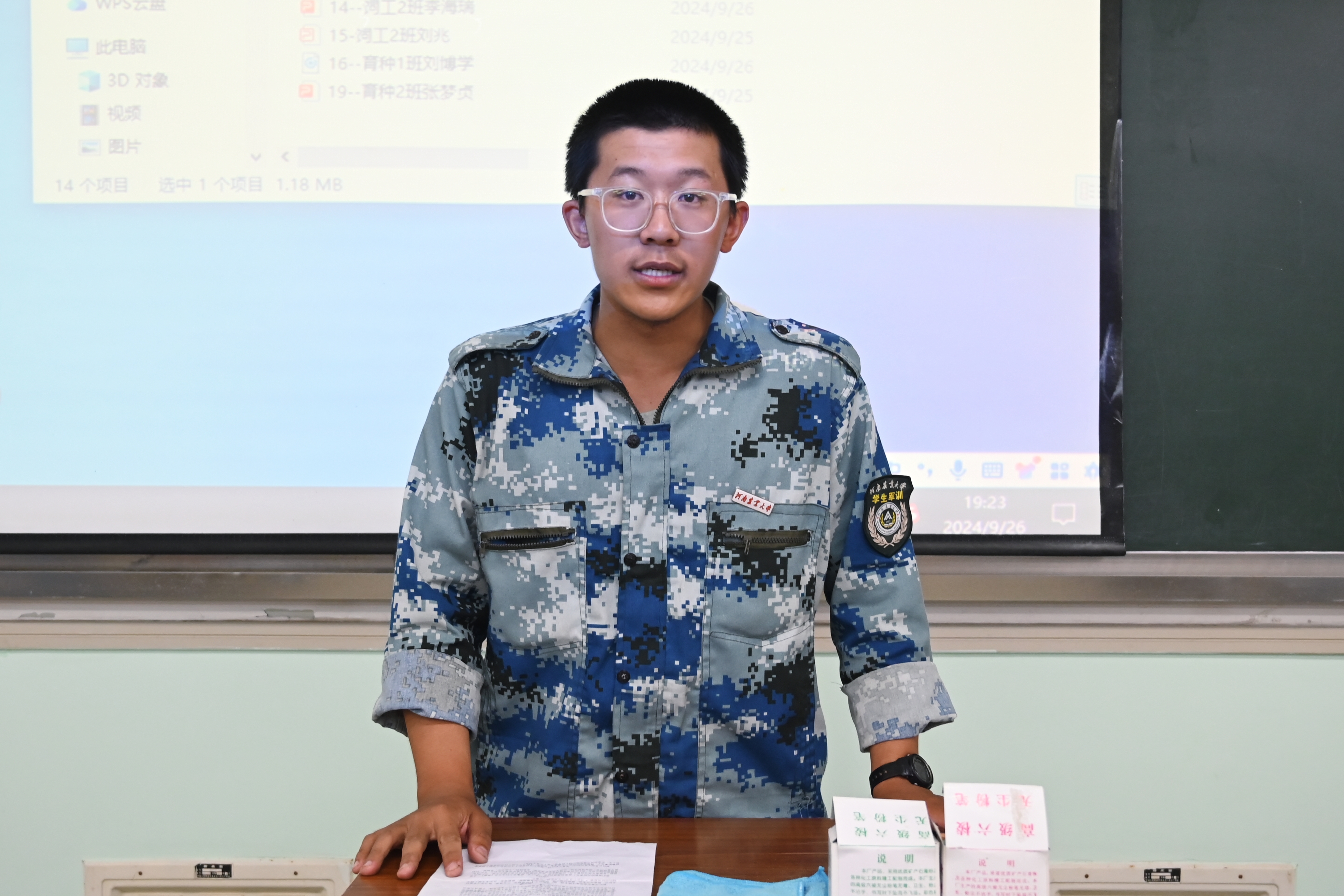 2024级新生于文化路校区工程楼305教室举办“同心庆华诞 共筑中国梦”主题演讲比赛,兼职辅导员闫喆及3名助班担任评委,比赛由杨冰冰主持。