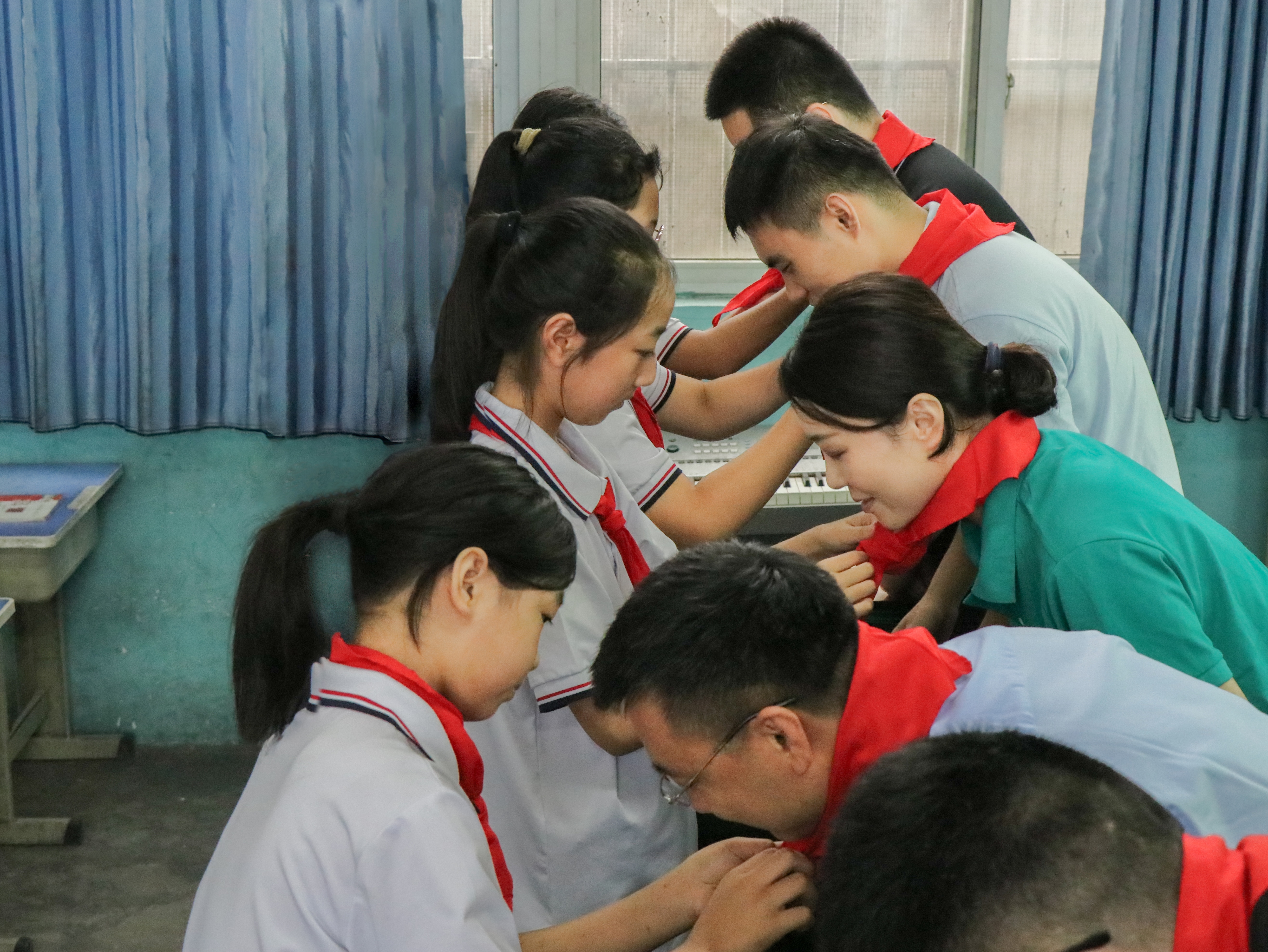 学生们为老师们系红领巾