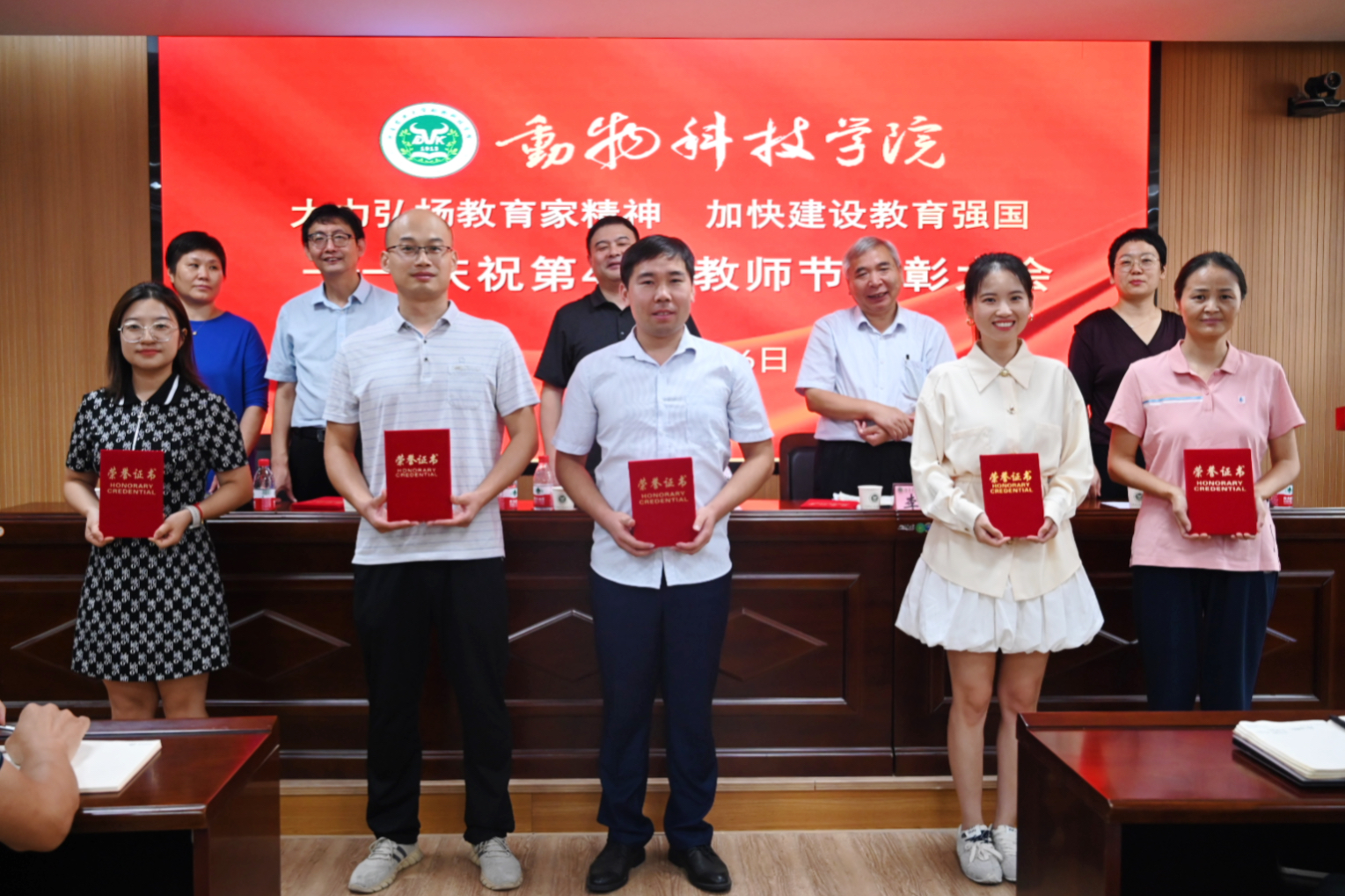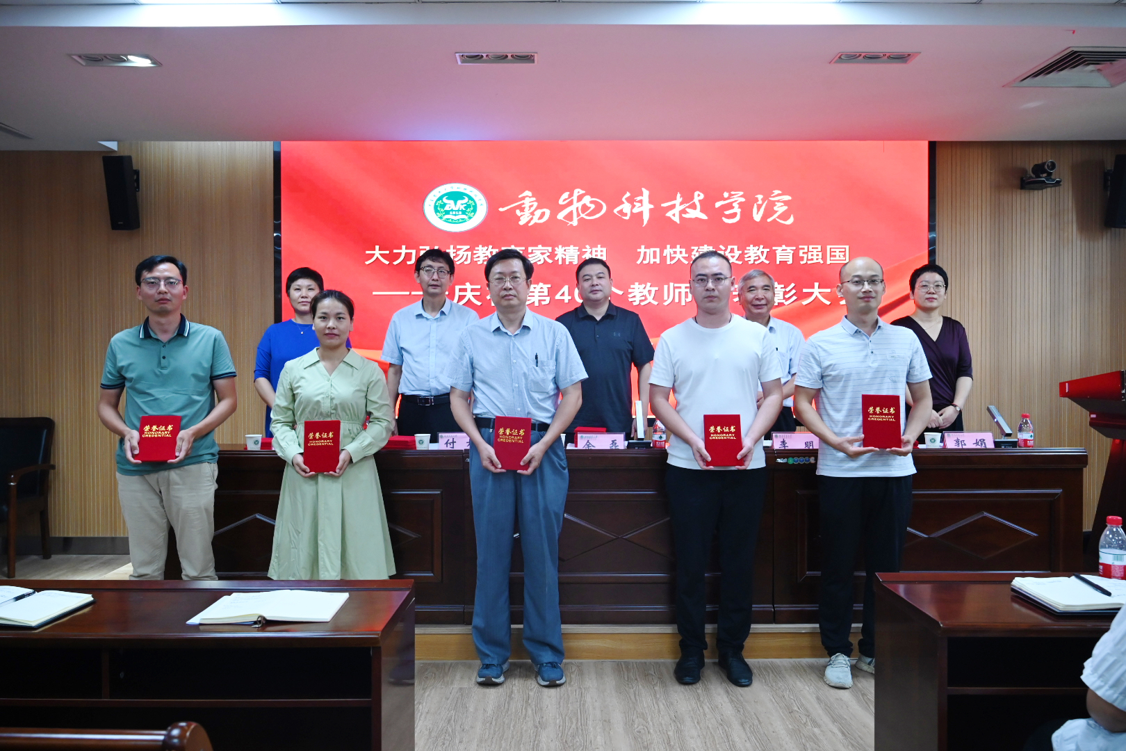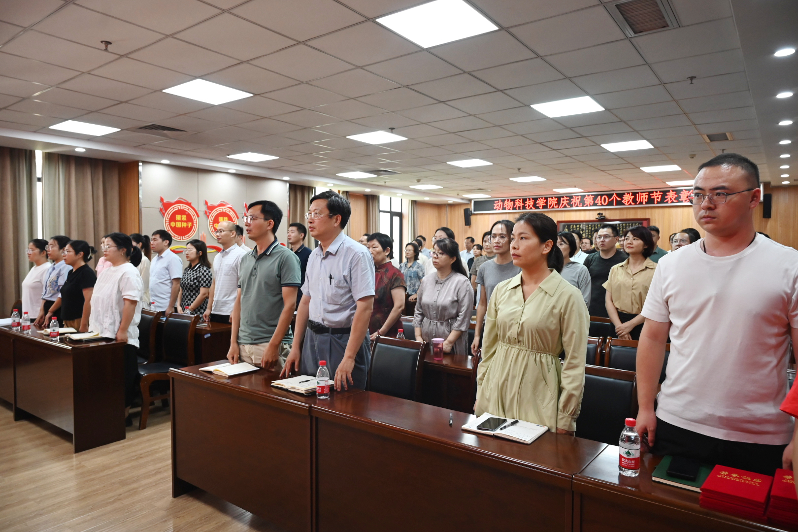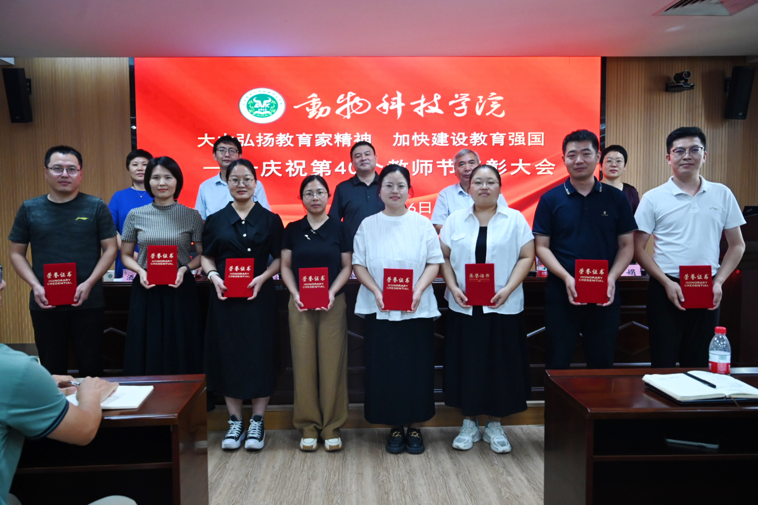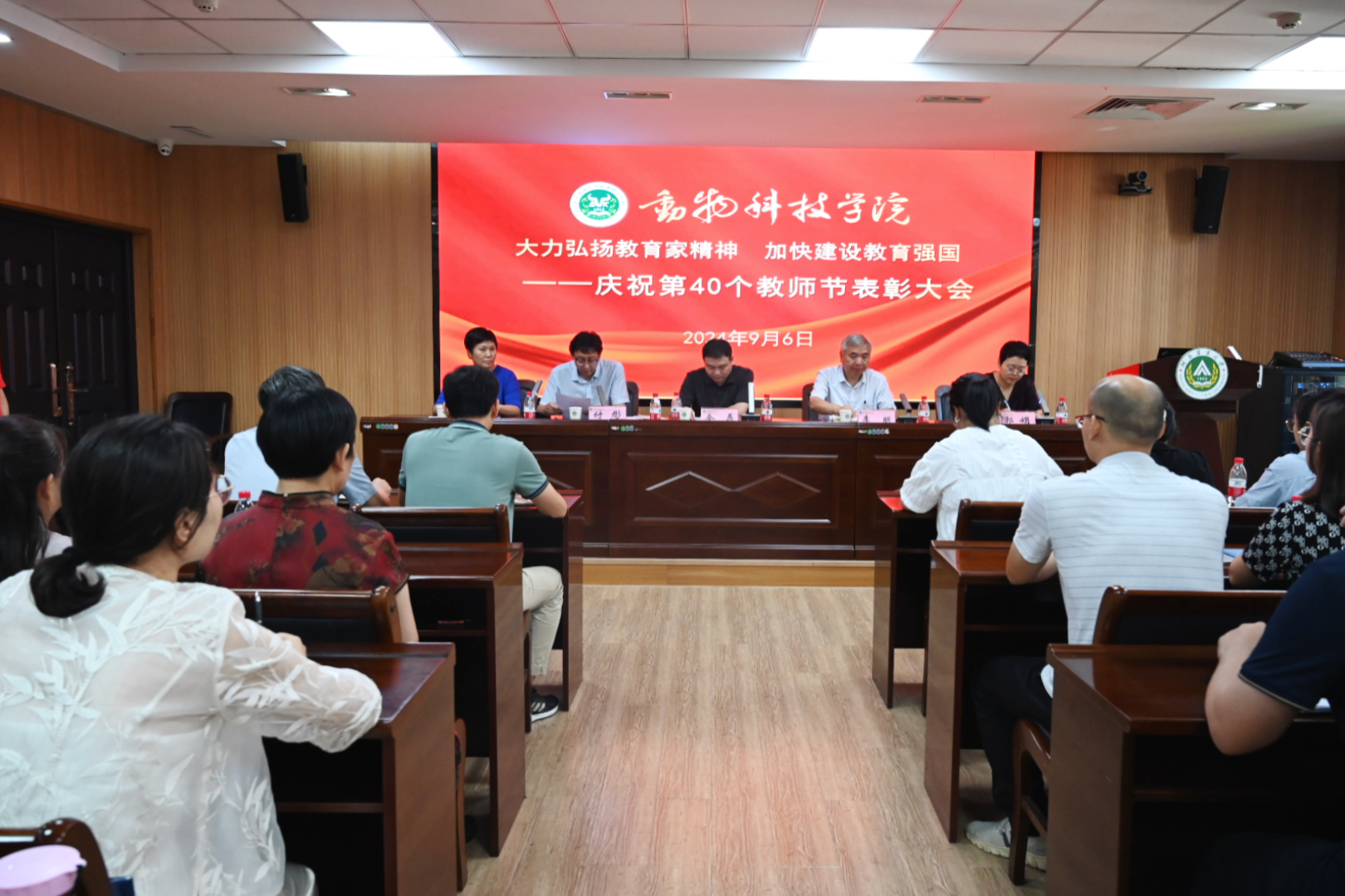于龙子湖校区第一实验楼南321会议室隆重举行庆祝第40个教师节表彰大会暨新学期学院重点工作部署会议。学院领导班子和全体教师参加会议,会议由党委副书记郭娟主持。