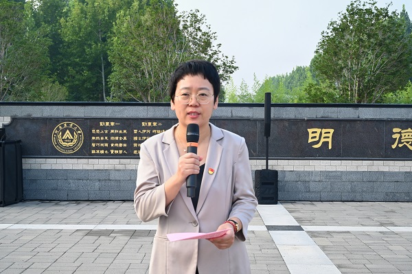 于龙子湖校区举行“七十五载春华秋实 砥砺前行共绘新篇”秋季新学期升国旗仪式,学院全体师生参与活动,仪式由院党委副书记郭娟主持。