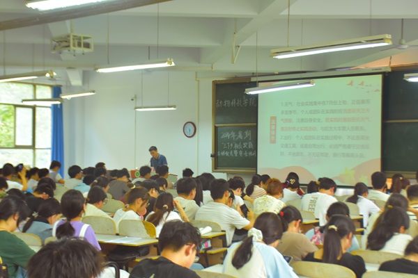 杨超然进行暑期社会实践安全培训,他建议学生在实践活动前要进行合理规划,并针对实践过程中的天气安全、出行安全、财产安全等多方面进行细致全面的讲解,提醒大家做好自我防护,保证实践安全。