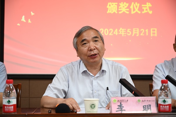 李明对亿万中元集团表示诚挚感谢,对获奖师生表示了真诚祝贺。他提出两点期望激励学院师生们学农爱农,推动产业发展:一是要心存感恩,服务社会;二是要追求卓越,志存高远。最后,他祝愿亿万中元集团事业蒸蒸日上,并希望深化院企合作交流,巩固、扩大合作成果,实现双方互利共赢。