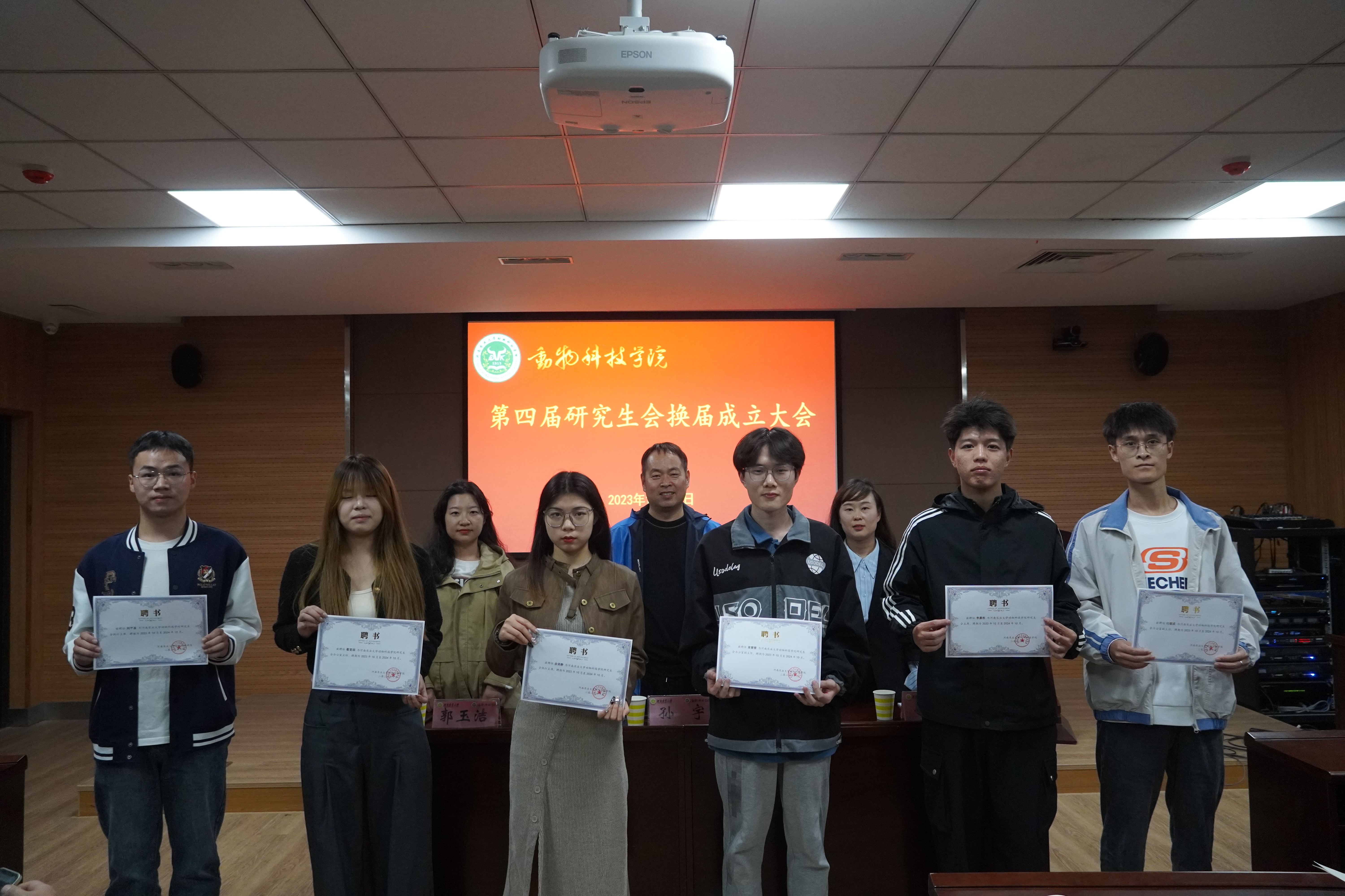 孙宇宣读第四届研究生会学生干部名单并颁发聘书,对第三届研究生会学生干部的工作给予肯定,为他们颁发荣誉证书并表示感谢。他强调研究生会是群众组织,是领导和老师的助手;同时,希望研究生会新成员在以后可以把握机会,锻炼自己,提高个人综合能力。