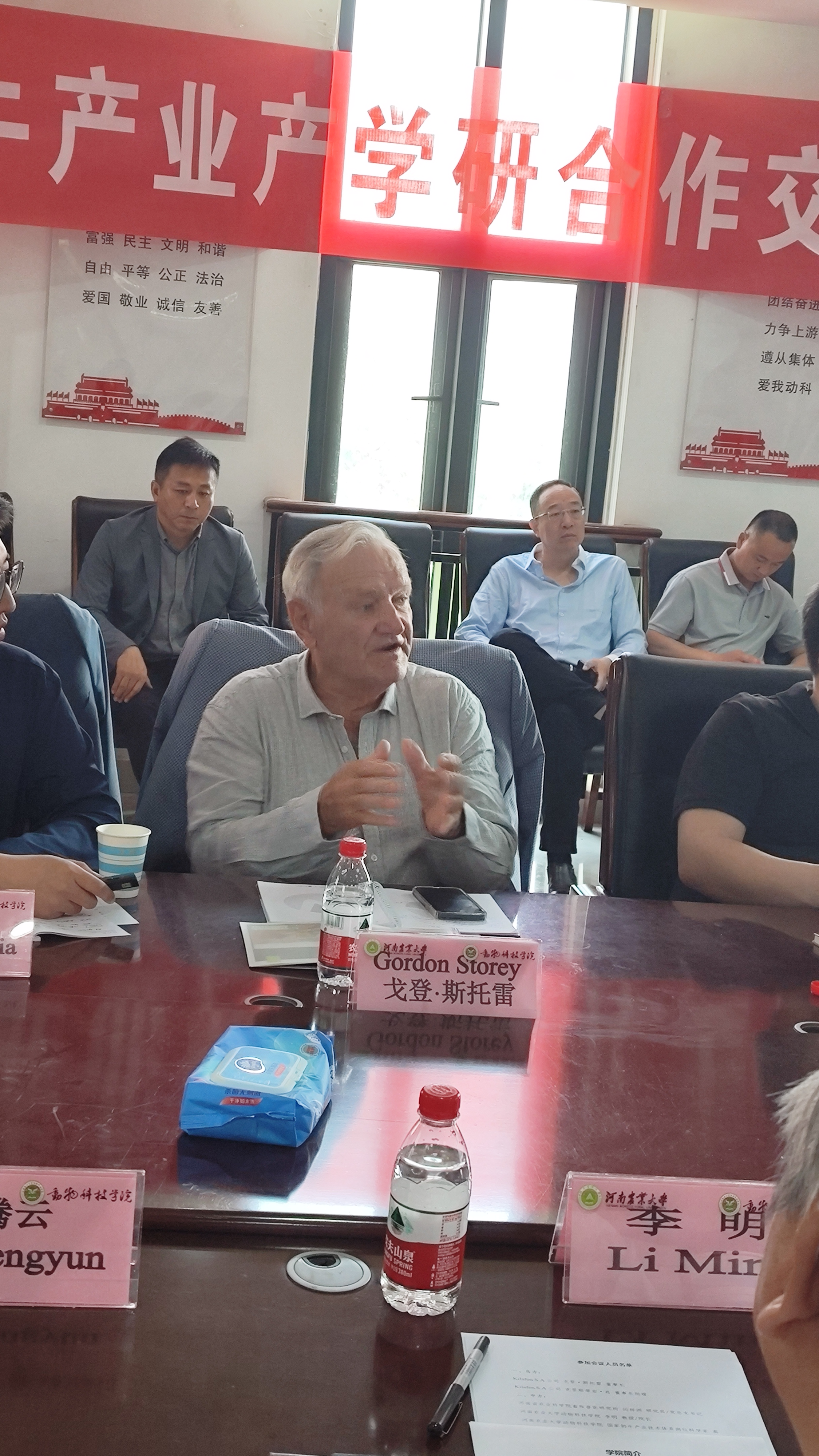院长李明致欢迎词。他对戈登·斯托雷董事长、闫祥洲研究员及企业领导一行的到来表示热烈欢迎,介绍了学院的发展概况和发展思路。他指出,小黄书app 探索围绕行业发展的应用基础和应用技术开展研究和人才培养的特色发展思路,落实“开放办院、教学立院、科研强院、行业兴院、活力荣院”的发展理念,他表示学院在与企业协同发展、科技创新方面具有很好的合作基础和巨大的发展空间。学院将与基拉芬等企业一起加强合作,将学术研究与产业发展相结合,符合国家对外开放政策,促进肉牛产业产学研协同发展。