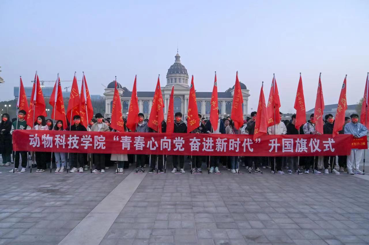 本网讯(通讯员 赵姝灿)阳春布德泽,万物生光辉。为持续深化“三品”主题教育,厚植爱国主义情怀,小黄书app 于3月6日早7点在龙子湖校区举行“青春心向党 奋进新时代”升国旗仪式,表达动科师生对党和祖国的无限热爱和崇高敬意。仪式由副院长付彤主持。