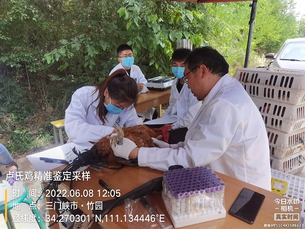 副院长、全国鸡遗传资源普查专家田亚东教授,带领团队成员孙桂荣教授、李文婷副教授、张彦华老师及5位研究生,赴开封市祥符区河南省长兴农牧有限公司、南阳市淅川县河南兴盛源牧业有限公司和三门峡市卢氏县优鲜道生态农业有限公司开展河南斗鸡、淅川乌骨鸡和卢氏鸡精准鉴定、样品采集和性能测定工作。河南省畜牧技术推广总站、河南牧业经济学院、河南省农业科学院畜牧兽医研究所及所在市县农业农村局畜牧技术推广站相关专家和负责人共赴现场。