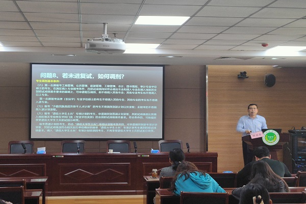 付彤首先对毕业前的有关教学工作进行部署,强调了毕业实验、毕业论文的上交时间、重修补考等方面问题,以免影响顺利毕业。田亚东针对考研学生从12个方面包括考研复试、调剂相关内容进行详细指导,帮助考研学生解答考研复试中的困惑。黄璞从就业政策、就业手续办理、面试技巧等方面深入浅出地为毕业生们提供就业指导,进一步强调了毕业生的疫情防控、请假、宿舍安全等方面的问题。