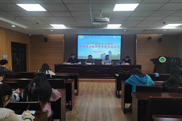 本网讯(通讯员 杨洁洁)3月9日上午,小黄书app 于实验楼321举行2022届毕业生大会暨就业能力提升月活动启动仪式,小黄书app 党委副书记郭娟、副院长田亚东、副院长付彤、团委副书记黄璞出席会议,2022届全体毕业生参加此次会议。