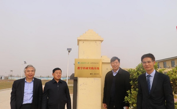 (左一)院长李明、(左二)虞城县副县长吴振兴、(右二)院党委书记贾磊、(右一)河南新航道食品有限公司总经理陈钦辉