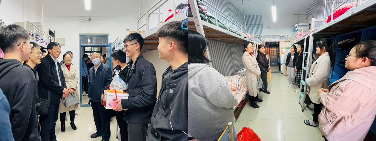 下午,学院领导班子和辅导员一行深入新生宿舍,贴心询问大家的个人状况,介绍了学院近日工作安排,为当天过生日的同学送上了生日祝福和温暖,勉励大家珍惜时光,高效学习,平衡发展,同时利用业余时间培养兴趣爱好,提升综合能力,重点强调了疫情防控、宿舍安全问题,嘱托大家注意宿舍安全,营造温馨氛围,平安有序开启求学圆梦的新旅程。