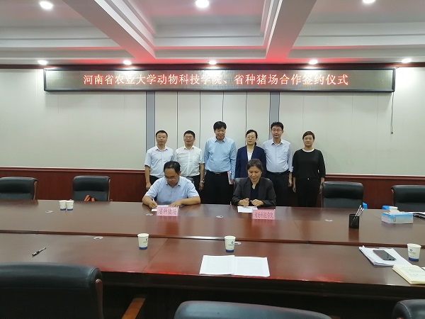 院党委书记贾磊在讲话中指出,学院与河南省正阳种猪场长期保持合作关系,李转见博士挂职以来,更是为双方搭建桥梁、走成亲戚,加强合作,形成共识,共谋发展。此次签约是深入贯彻党中央、省委决策部署,立足实际、项目为王,充分发挥市场主体作用,优势互补;加强猪种质资源保护,促进绿色化、规模化、智慧化养殖,推动一二三产业融合发展,持续做大做强、做精做透畜牧生产全产业链。