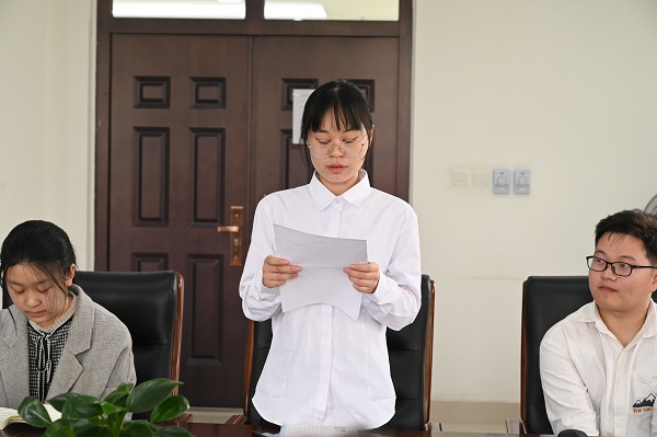 第四期新学员代表张新雨发言,她对此次加入青马班感到光荣,表示将坚定拥护马克思主义,带动身边人学习和传播马克思主义,积极参与社会实践,在实践中得到思想上的升华,做一名合格的党的后备军。