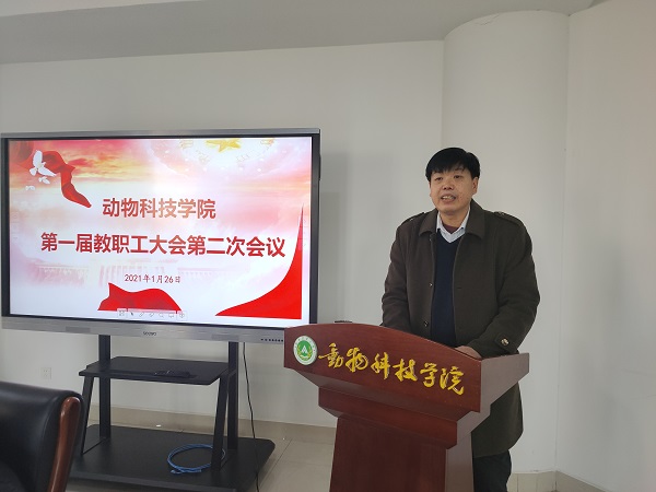 党委书记贾磊作总结讲话,他指出,2021年是 “十四五”规划的开启之年,是抓“六保”促“六稳”、育新机开新局的关键时期,为了唱响动科学院发展最强音,提出三点体会与大家共勉:一是精心练好个人主唱,找准自身定位,聚焦主责主业,充分展现个人的性格与特色,践行初心使命;二是善于统筹学科领唱,团结互助,集思广益,资源共享,平台共建,行动联手,共同推进学科建设;三是积极融入学院合唱,将个人价值和集体利益融为一体,进一步发扬集体主义精神和主人翁意识,积极支持、全力配合学院各项工作。他强调,全院上下要拧成一股绳,敢拼、敢闯,实干、苦干,用打江山心态、以主人翁思维、使拓荒牛劲头,创造学院更加辉煌的明天。
