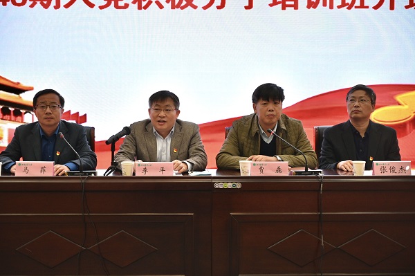 李平在讲话中,对参加本期培训班的学员表示祝贺,对入党积极分子培训的重要意义及目的进行说明,对办好本次培训班提出了明确的要求。他寄语学员一是要加强理论学习,不断坚定理想信念;二是要端正入党动机,主动接受组织考验;三是要坚持学以致用,时刻发挥先锋模范作用。