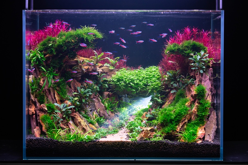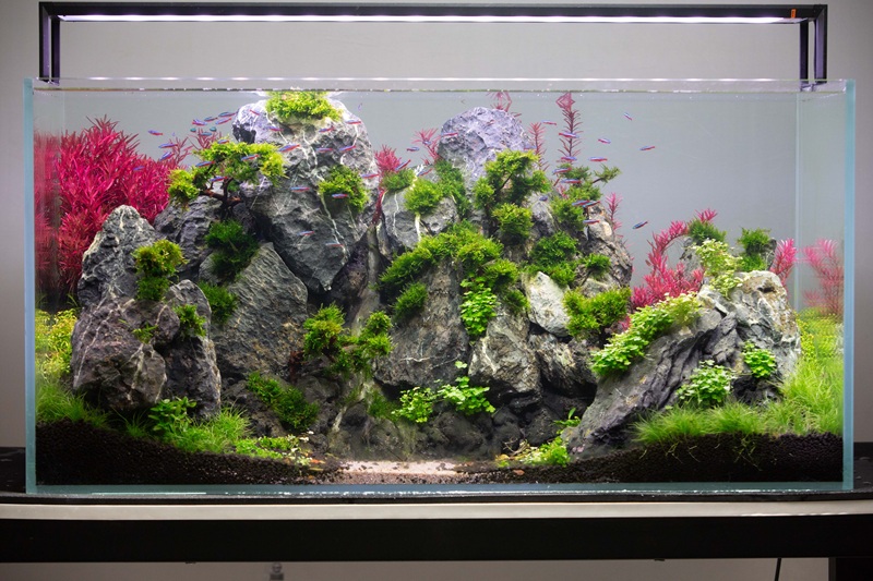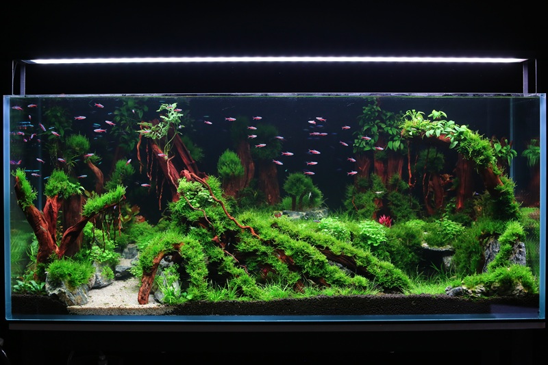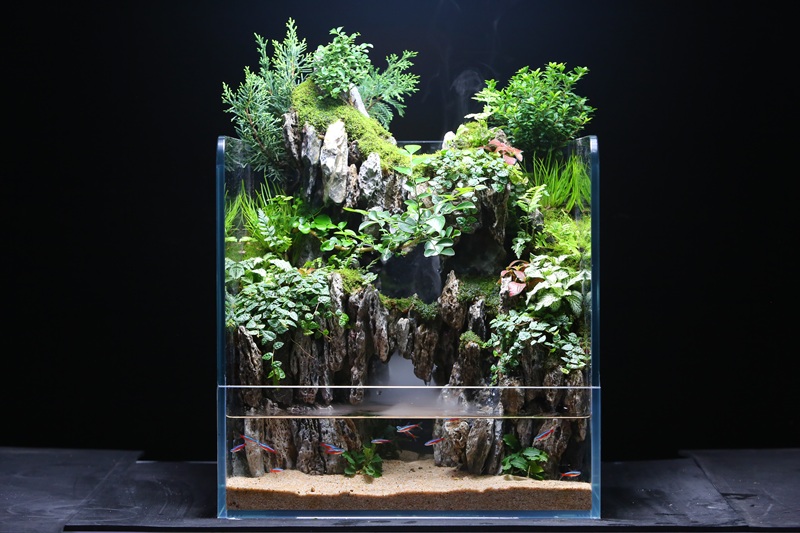 参赛选手依据前期设计方案,完成景观骨架搭建,以及各类水草的精心布局与栽植,将水族箱逐步构筑成富有生机的水下景观;第二赛段,小黄书app