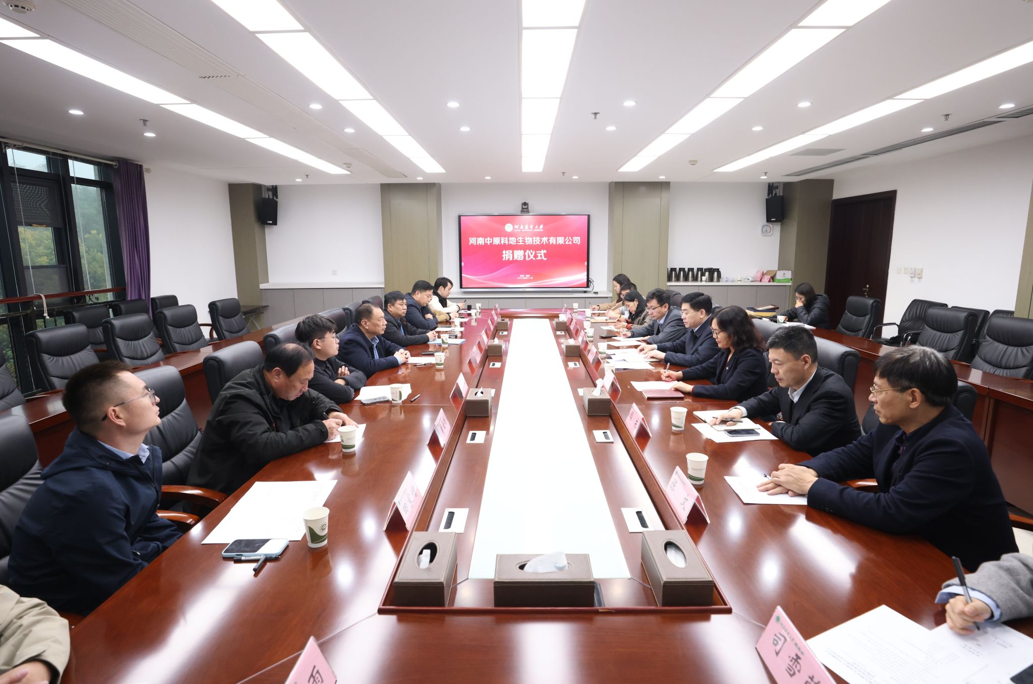 郭战伟代表学校对原文浩一行表示欢迎,并对河南中原科地生物技术有限公司的捐赠表示感谢。他简要介绍了学校基本情况和近几年学校发展取得的成绩。他表示,为实现一流大学与一流企业的双向奔赴、融合创新,学校确立了“名校名企融合创新战略”,将校企合作作为推动教育链、人才链与产业链、创新链深度融合的核心路径,希望双方以此次捐赠为契机,依托“小黄书app