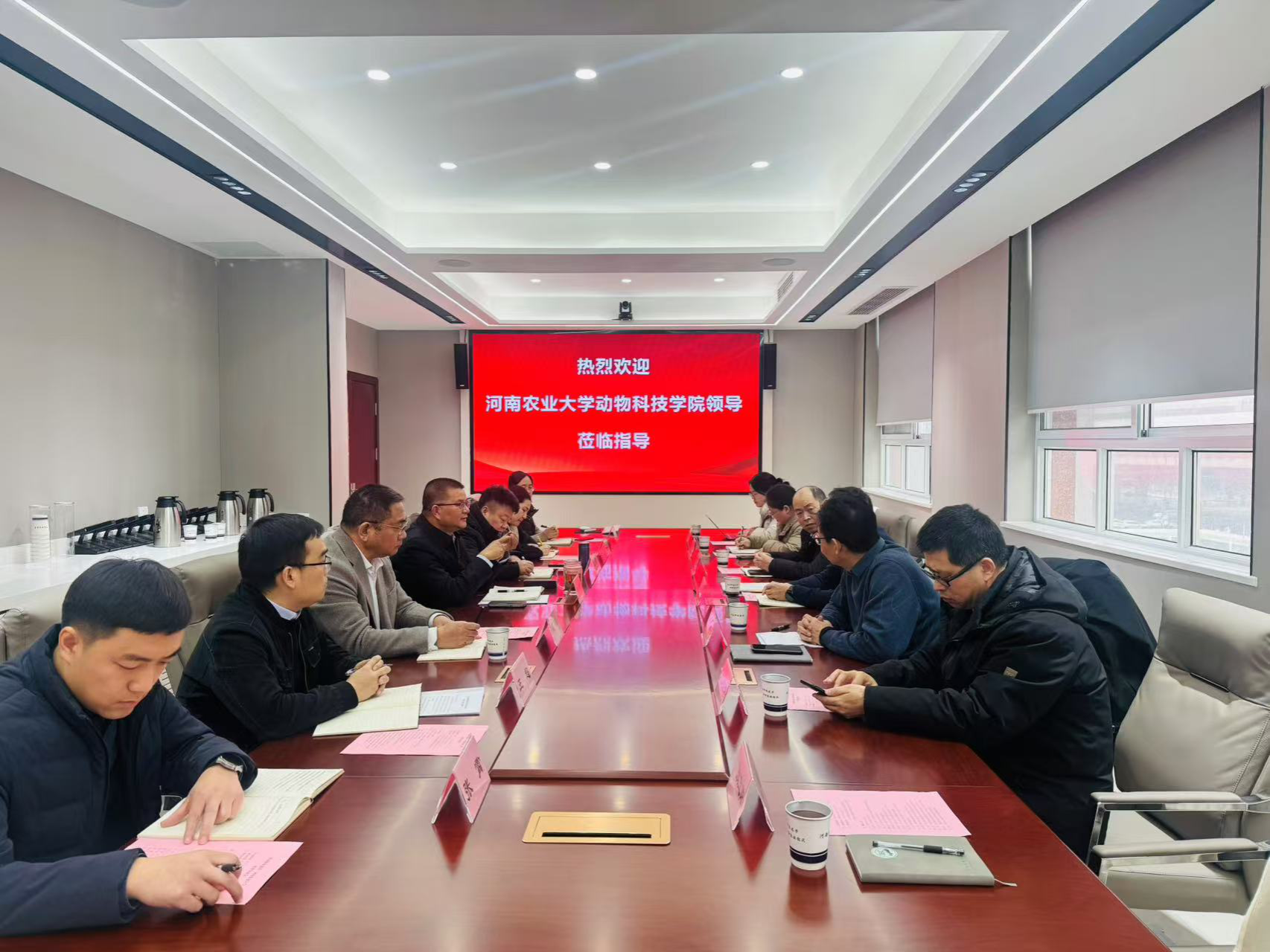 青年教师张立阳和宫玉杰一行赴河南种业集团开展座谈交流。河南种业集团总经理刘旸、河南种业集团党委委员兼鼎元种牛董事长田全召及各部门负责人参会。