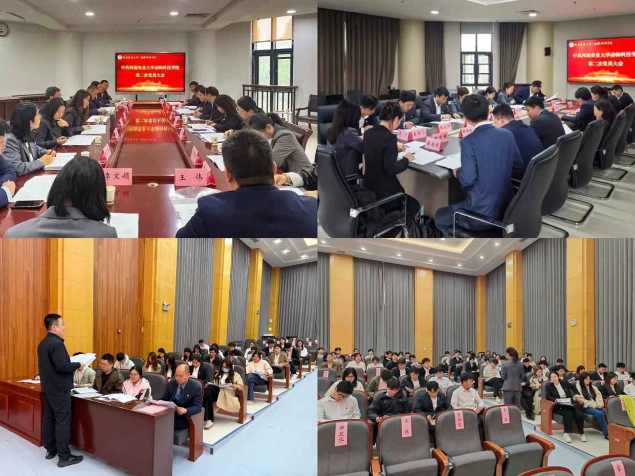 第一届委员会,作题为《踔厉奋发新时代 凝心聚力向未来 以高质量党建引领学院事业高质量发展》的工作报告,指出过去五年是学院独立建院、实现跨越式发展的五年。学院党委始终坚持党建引领,获评河南省先进基层党组织、校级“党建工作标杆院系”和“文明学院”,3次荣获校“宣传思想文化工作先进单位”,学院领导班子连续5年绩效考核优秀;基层党组织建设成效显著,1个支部入选省级“样板支部”、3个支部获评校级“样板支部”,1个支部正在参加全国“样板支部”评选;学科实力稳步攀升,畜牧学学科在全国第五轮学科评估中荣升B-级;康相涛教授当选中国工程院院士,实现学校本土培养院士零的突破;科研创新、人才培养、社会服务、产教融合、开放办学等协同推进,学院各项事业迈上新台阶,为高质量发展奠定了坚实基础。