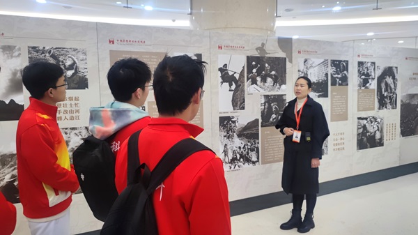 学生们在讲解员带领下参观展厅