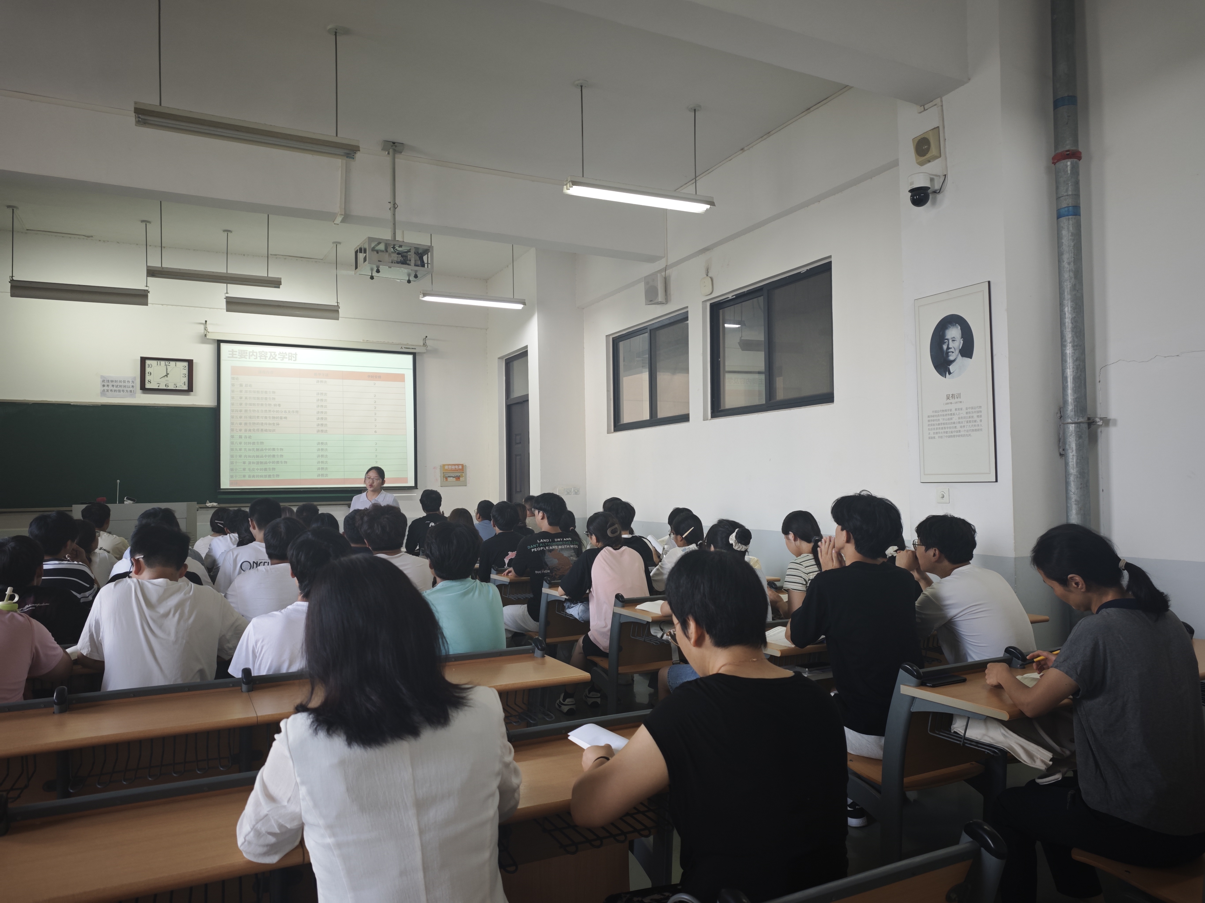 检查组先后走访了多个教室,重点察看了《畜牧微生物学》、《生物信息学》、《水产品品质与卫生检验》、《伴侣动物营养学》等课程的教学情况。检查内容包括教师到课情况、教学秩序、学生出勤率、课堂纪律等方面。检查结果显示,学院各项教学工作运行正常,教师精神饱满,教学准备充分,学生到课率高,课堂氛围活跃,展现出良好的开学态势。