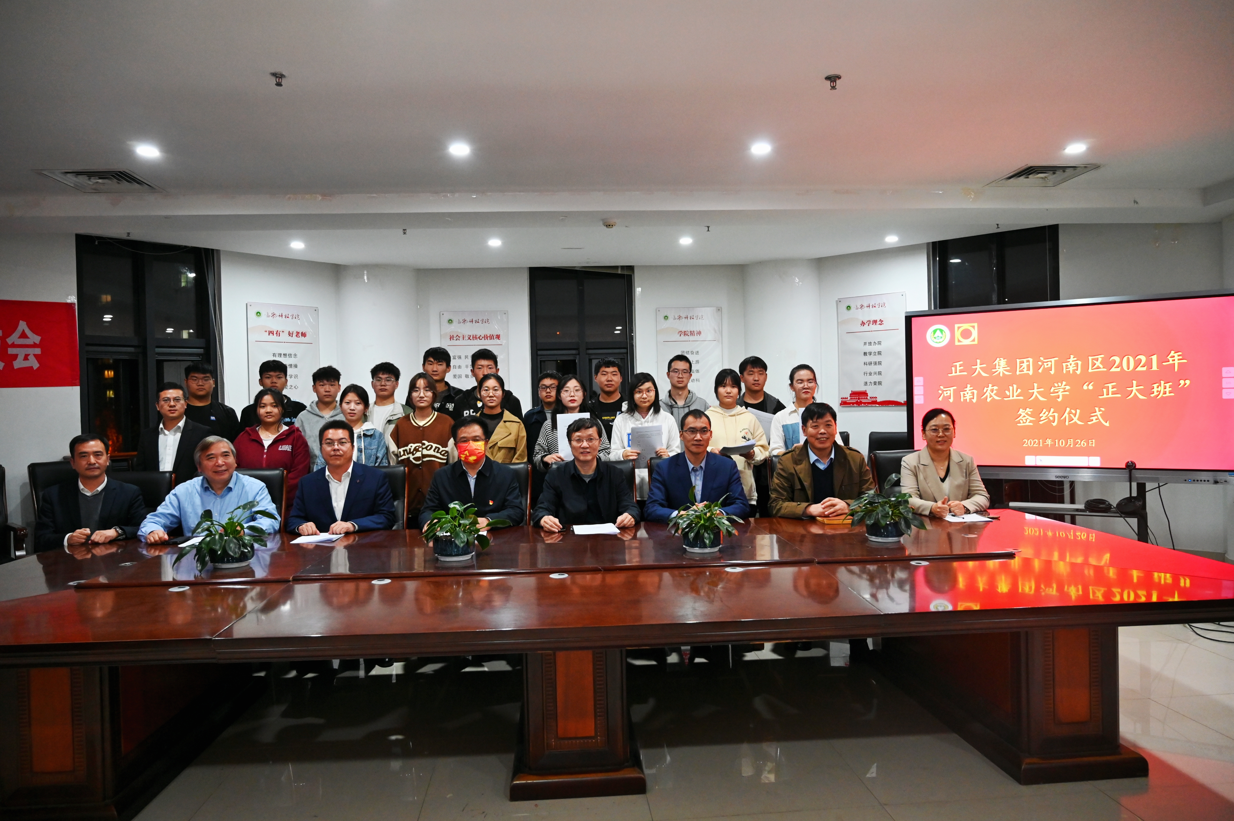 “正大班”(动物科学专业)在龙子湖校区举行宣讲、面试选拔及签约活动。校党委学工部部长、学生处处长徐峰,教务处副处长茹广欣,平顶山正大有限公司总经理张亚,开封正大有限公司总经理王向峰,正大集团河南区饲料养殖事业人事主管文俊雅,洛阳正大食品有限公司人事主管张振华,正大集团河南区招聘中心人事主管陈柏希及小黄书app