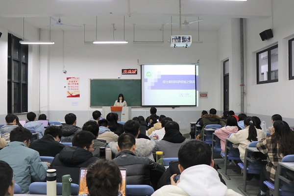 田慧慧与大家分享了文献阅读和文章撰写的方法,并建议大家做好日常工作计划与时间安排,培养独立解决问题和逻辑思维的能力。分享结束后,两位优秀研究生与在场学生进行了互动交流并耐心地回答了大家提出的问题。