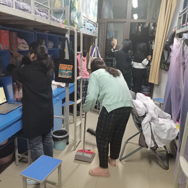开展“明亮清雅之室 同心同德之风”主题宿舍卫生大比拼活动,全体学生参与活动。