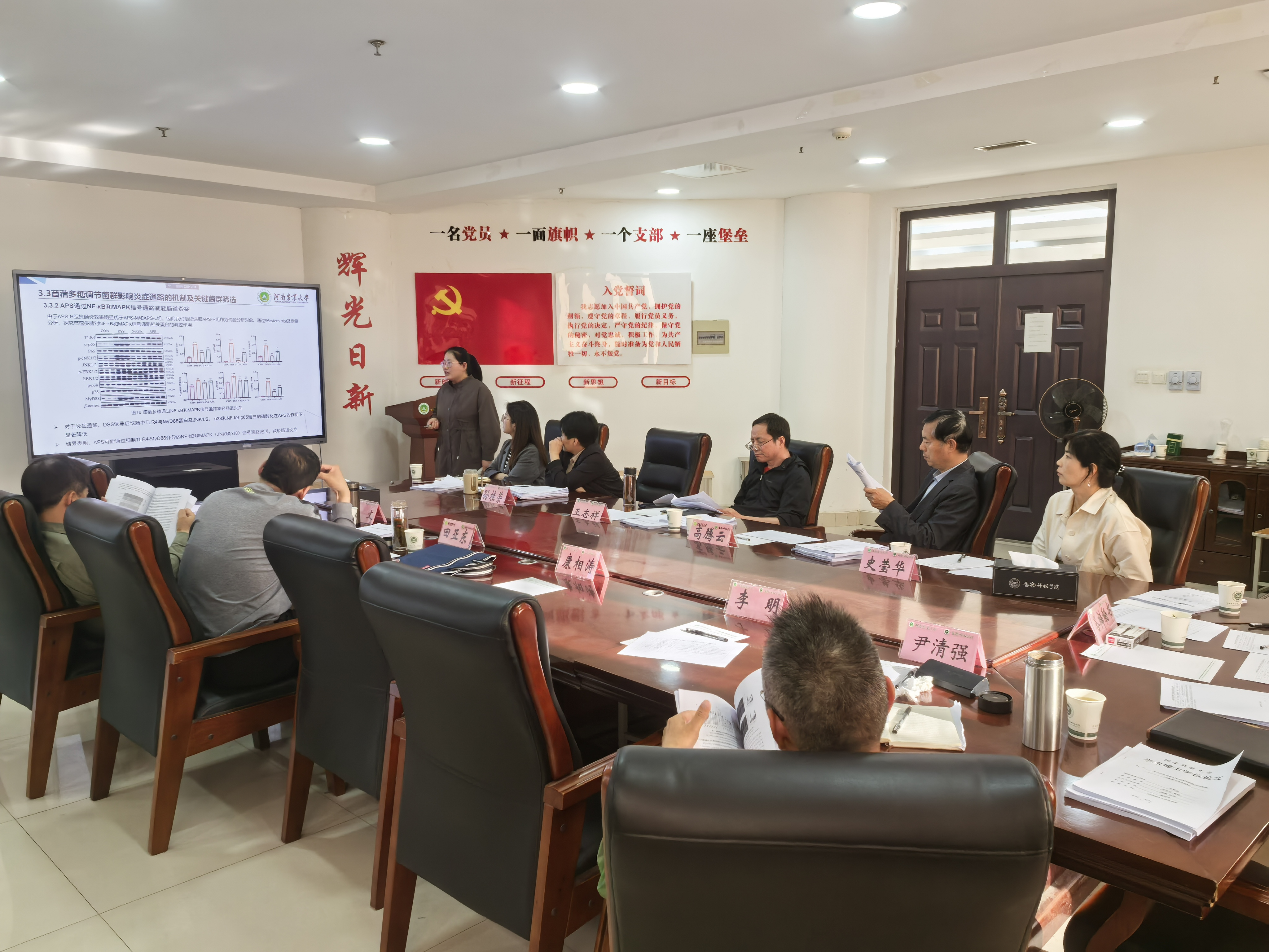 2020级博士研究生腊邵凯,2021级博士研究生张豪、乐雅馨、杜鹏飞、牛军龙、刘梦洁和张梦璐分别对“苜蓿多糖对肠道炎症的缓解作用及机制研究”、“生理重塑中肠肝功能变化及其互作机制”、“circDERA介导ceRNA网络调控鸡食欲的分子机制”、“鸡IGFBP5和LncIGFBP5在骨骼肌发育及其代谢中的调控功能研究”、“白芍总苷对呕吐毒素诱导的肠道运动障碍的缓解作用及机制”、“呕吐毒素和黄曲霉毒素B1的叠加毒性及壳寡糖缓解其对仔猪危害的作用机制研究”和“共轭亚油酸调控奶山羊乳腺和瘤胃微生物影响乳脂及脂肪球粒径的研究”共7篇学位论文从研究意义、研究内容、研究方法和研究结论等方面进行报告。预答辩委员会委员针对预答辩人陈述对其论文进行评议,并提出针对性问题及意见。预答辩人员认真记录并表示会认真听取各位老师的宝贵建议和意见,对论文进行进一步修改完善。