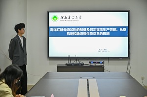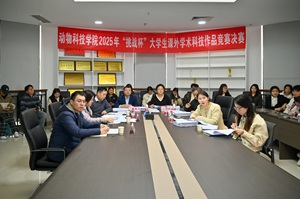 于龙子湖校区第一实验楼南501会议室举办2025年“挑战杯”大学生课外学术科技作品竞赛决赛。院党委副书记郭娟、副院长孙宇、副院长李转见、动物生产与智慧牧业系教授王林枫,动物遗传育种与繁殖系教授韩瑞丽、动物遗传育种与繁殖科学系副教授李红、辅导员赵姝灿、杨超然担任评委,15支学生队伍到场答辩。