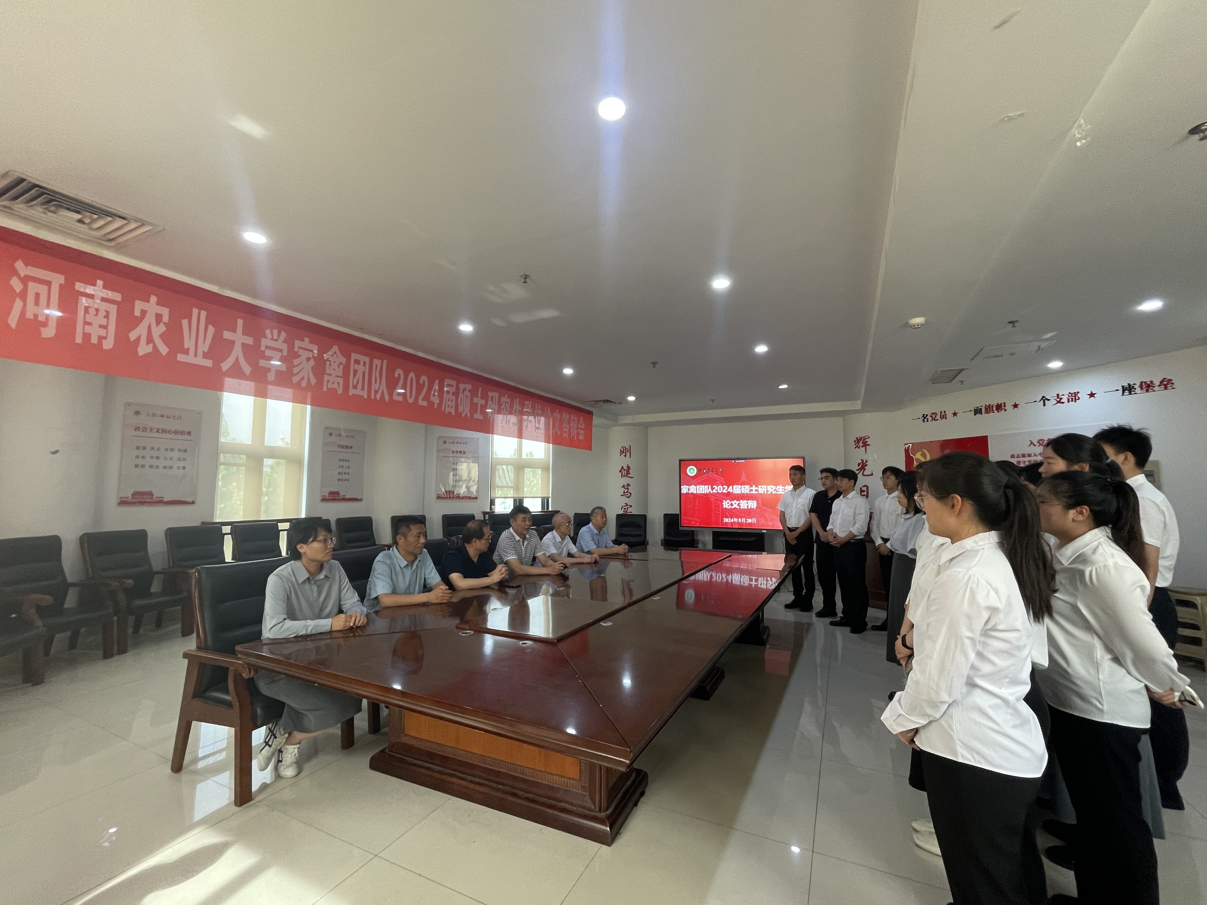 研究生论文答辩的要求和程序,依次从导师介绍答辩人个人情况、答辩人汇报PPT、专家提问等环节进行。家禽团队23位2024届硕士研究生分别从选题背景、研究方法、研究内容、研究结果、创新点及展望等方面向答辩专家汇报了硕士期间的科研工作。答辩专家对答辩论文的选题依据、研究成果、专业能力、写作能力和答辩水平等方面做了专业而深入的提问,考察了毕业生掌握专业知识的熟练程度及综合素养,并提出问题和建议提升了研究生论文的质量。答辩同学认真记录并回答了专家学者提出的问题,表示会对论文进行进一步修改完善。答辩现场气氛严肃而融洽、紧张而有序。