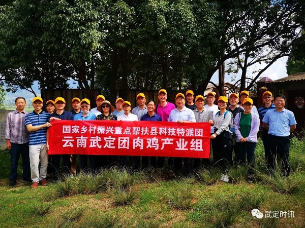 张彦华博士在内的20余位专家、教授、博士及企业家代表组成,武定县委书记罗如贵、县委副书记黄飞及相关部门负责人陪同调研或参加座谈会。7月25日,特派团先后到武定县彝峰壮鸡开发有限公司、云南武定永银农产品开发有限公司、武定臻骥农业开发有限公司、云南首羽农业发展有限公司等企业进行实地调研,与企业负责人和相关人员进行深入交流座谈,详细了解武定壮鸡产业发展现状,并提出了相应的意见和建议。7月26日,开展了国家乡村振兴武定县重点帮扶科技特派团肉鸡产业发展座谈会,就武定基本县情、武定壮鸡产业发展情况、存在困难及下一步工作计划进行商讨。专家组对武定壮鸡产业发展提出了强化种源保护、强化技术合作、强化招商引资、强化绿色发展、发展规模养殖等意见建议,并提出科技特派团肉鸡产业组的帮扶思路,确定三年工作目标任务,制定年度工作计划,围绕武定壮鸡产业技术指导服务、品种技术引进推广、技术瓶颈集中攻关、本土人才培养帮带、产业功能拓展等方面开展全产业链技术服务,全力助推武定壮鸡产业发展取得新突破。