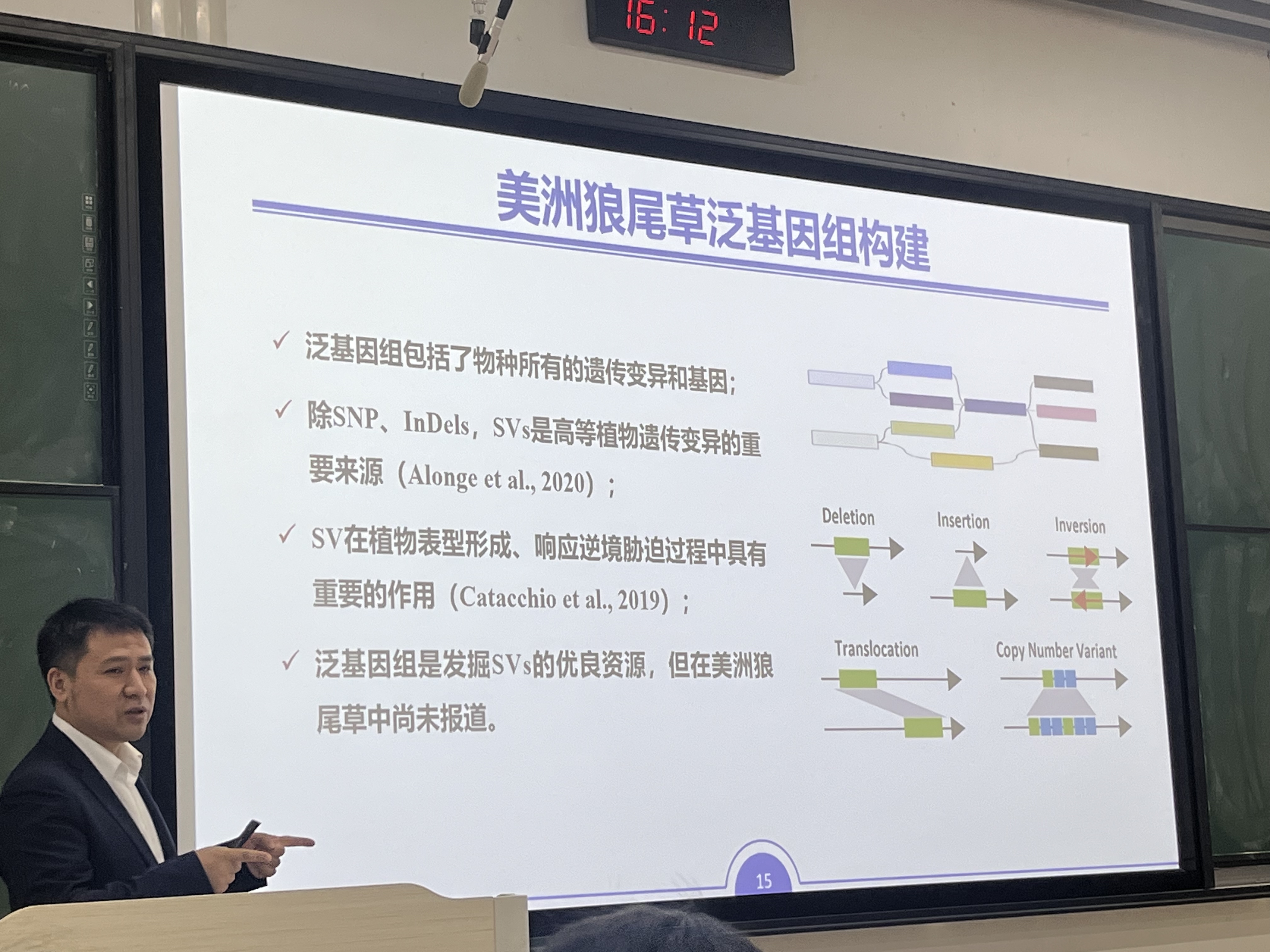 在本次学术交流中,黄院长系统地解析了其团队在狼尾草基因资源挖掘和分子育种方面取得的重要进展。针对我国优质饲草供给存在重大缺口的问题,黄教授团队通过广泛收集和评价狼尾草种质资源,筛选出5份优异材料。此外,他们还建立了美洲狼尾草首个图形泛基因组,为后续基因挖掘和相关机制研究提供了重要依据。在耐热机制研究方面,团队发现美洲狼尾草具有独特的耐热性,并从多组学层面解析了其耐热机制。最后,黄教授介绍了他们开展基于基因组选择的狼尾草新种质培育工作,成功选育出川育1号象草新品种。这些研究成果为改善我国优质饲草供给、推动牧草分子育种提供了有力支撑。