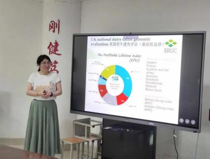 报告会讨论现场李冰洁教授以《英国动物遗传育种研究进展》为题,阐述了奶牛遗传评估的研究中各个性状所占比例、饲料效率遗传评估,随后介绍了利用机器学习预测采食量,提出机器学习将作为预测复杂表型工具的想法,讲述了基因编辑等育种技术。最后,总结了联合多组学技术研究复杂性状的重要意义。通过英国动物遗传育种的研究可以为我国动物遗传育种提供理论和技术支持。