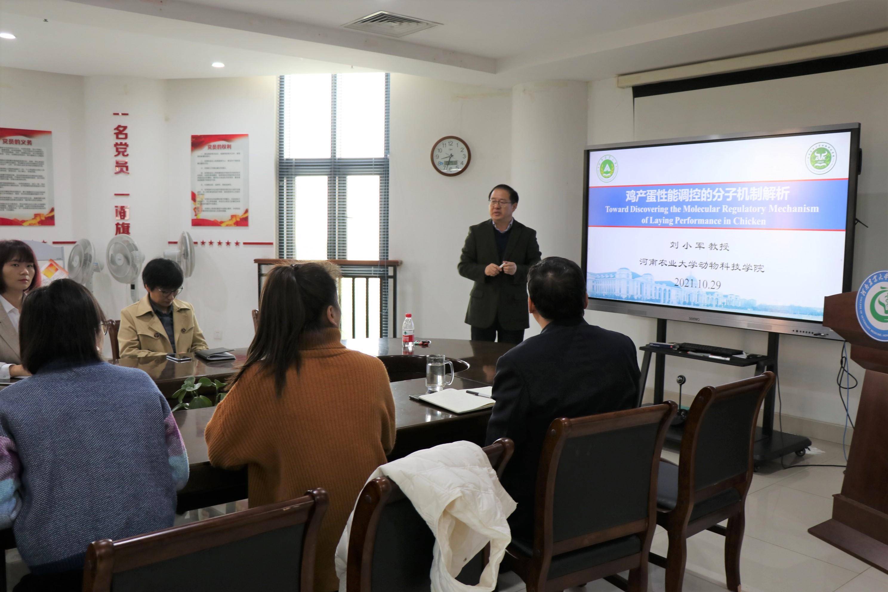 刘小军教授以《鸡产蛋性能调控的分子机制解析》为题,分别以基因组水平定位候选基因和位点、转录组水平发掘关键驱动基因、系统生物学策略解析多组织协同调控机制、关键候选基因功能验证等四个方面详细介绍了影响鸡产蛋性能调控的分子机制,并对重要复杂性状的解析未来所面临的挑战和对策进行了探讨。