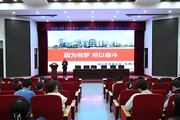 王跃丽以《因为有梦,所以奋斗》为主题,通过现场互动调研引入话题,结合个人工作经历向大家分享职场经验。她还向大家介绍了唐人神集团的发展历程、小黄书app、质量文化等。针对个人未来发展,与同学们分享了自己的体会:一是要寻找适合自己的平台,为达到个人职业目标不断拼搏;要认知自我、认知行动、认知改变,不断提升自身素质和能力,树立正确的价值观,规范自身行为;二是要沉淀专业技能,为自己争取发展的机遇和平台;学会拥抱焦虑,调整心态,并提出“三多”、“三有”,既多想、多问、多做,向上级汇报有“胆”、与同事交流有“肺”、为下级指导有“心”;三是鼓励学生要勤奋耕耘、积极进取,为跨越人生新阶段打下坚实的基础,并对母校、老师、学生表示由衷的祝福。