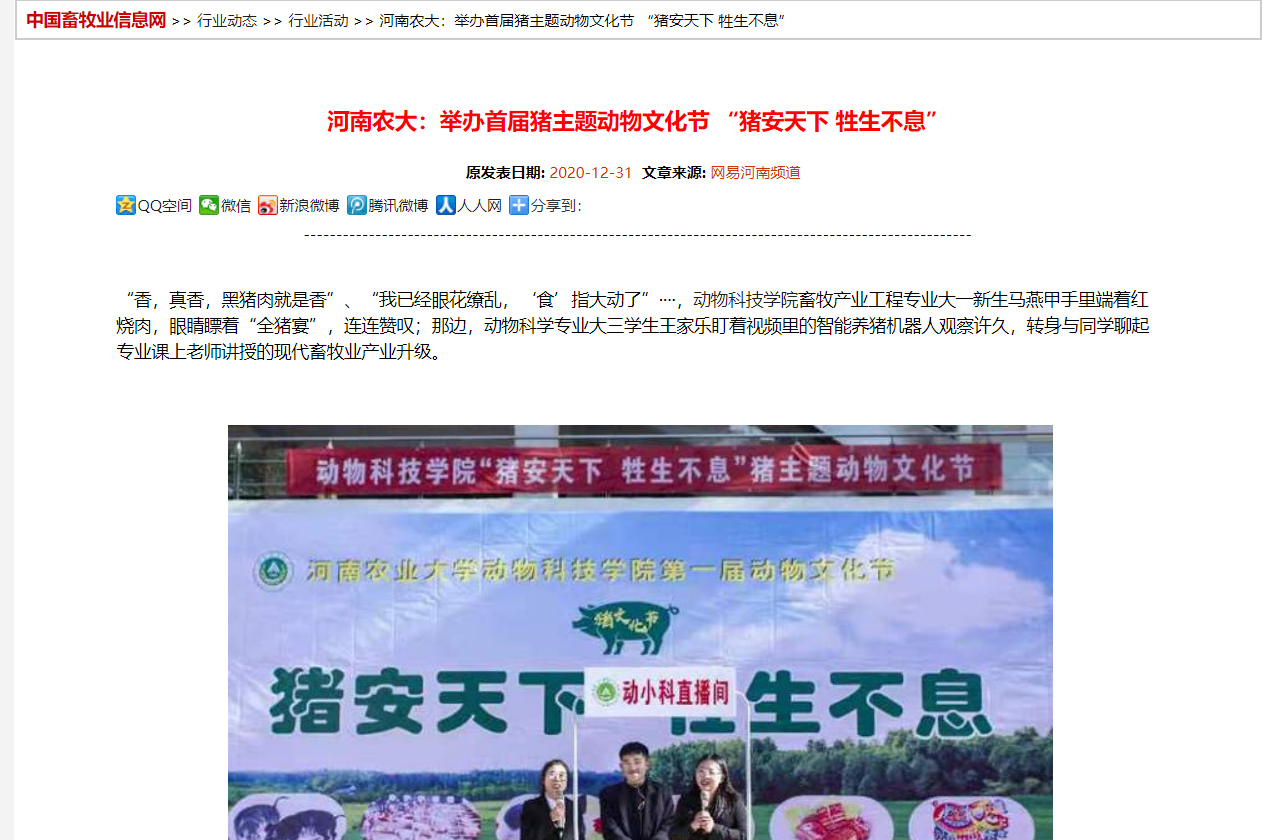 中国畜牧业信息网报道截图